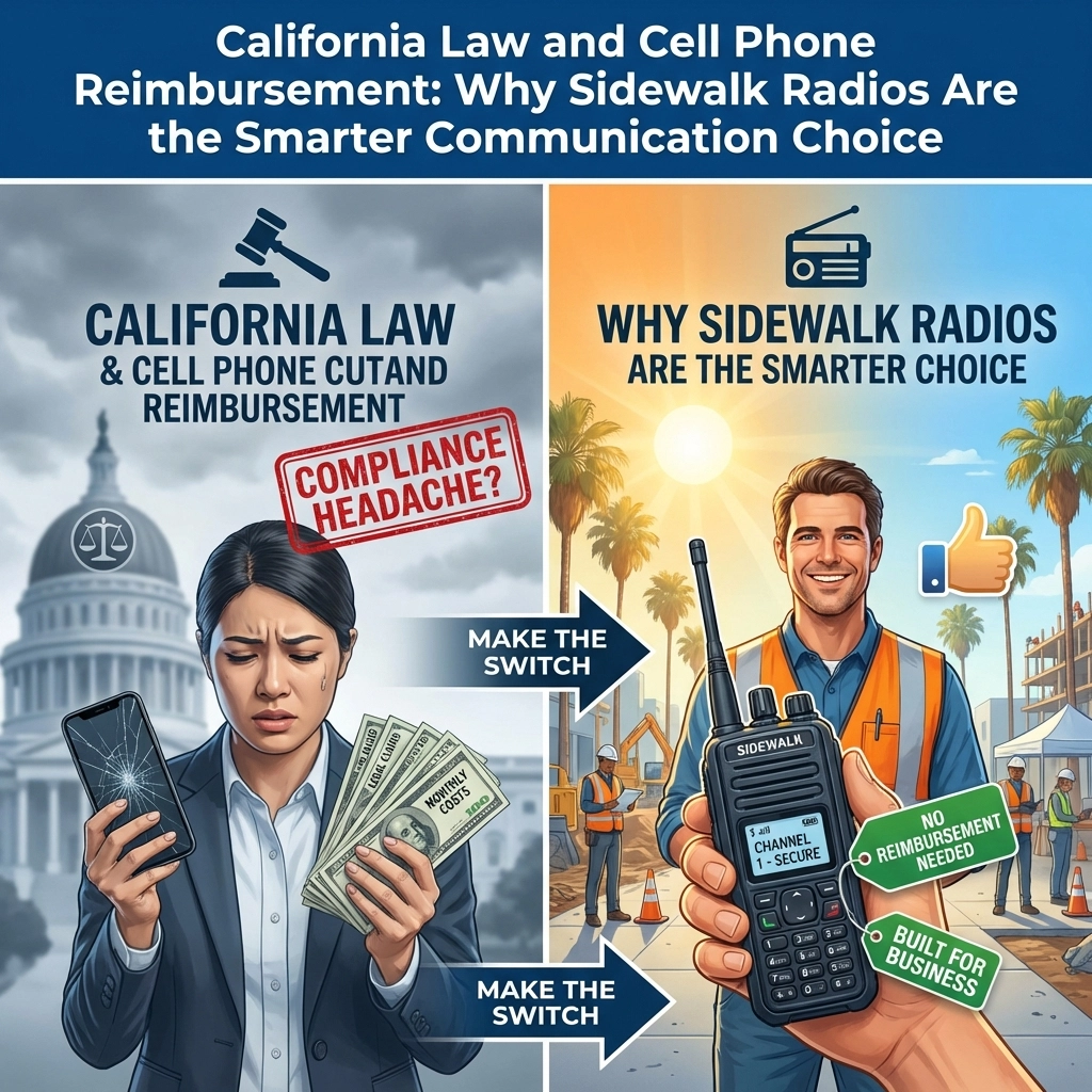 Sidewalk Radios provide unlimited-range, commercial-grade communication that completely eliminates the need for employees to use personal phones for work. Think about it – if your team has dedicated work communication devices, there's no personal cell phone usage to reimburse.